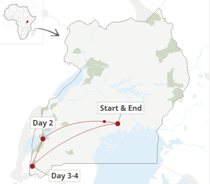 • This tour starts and ends in Kampala
